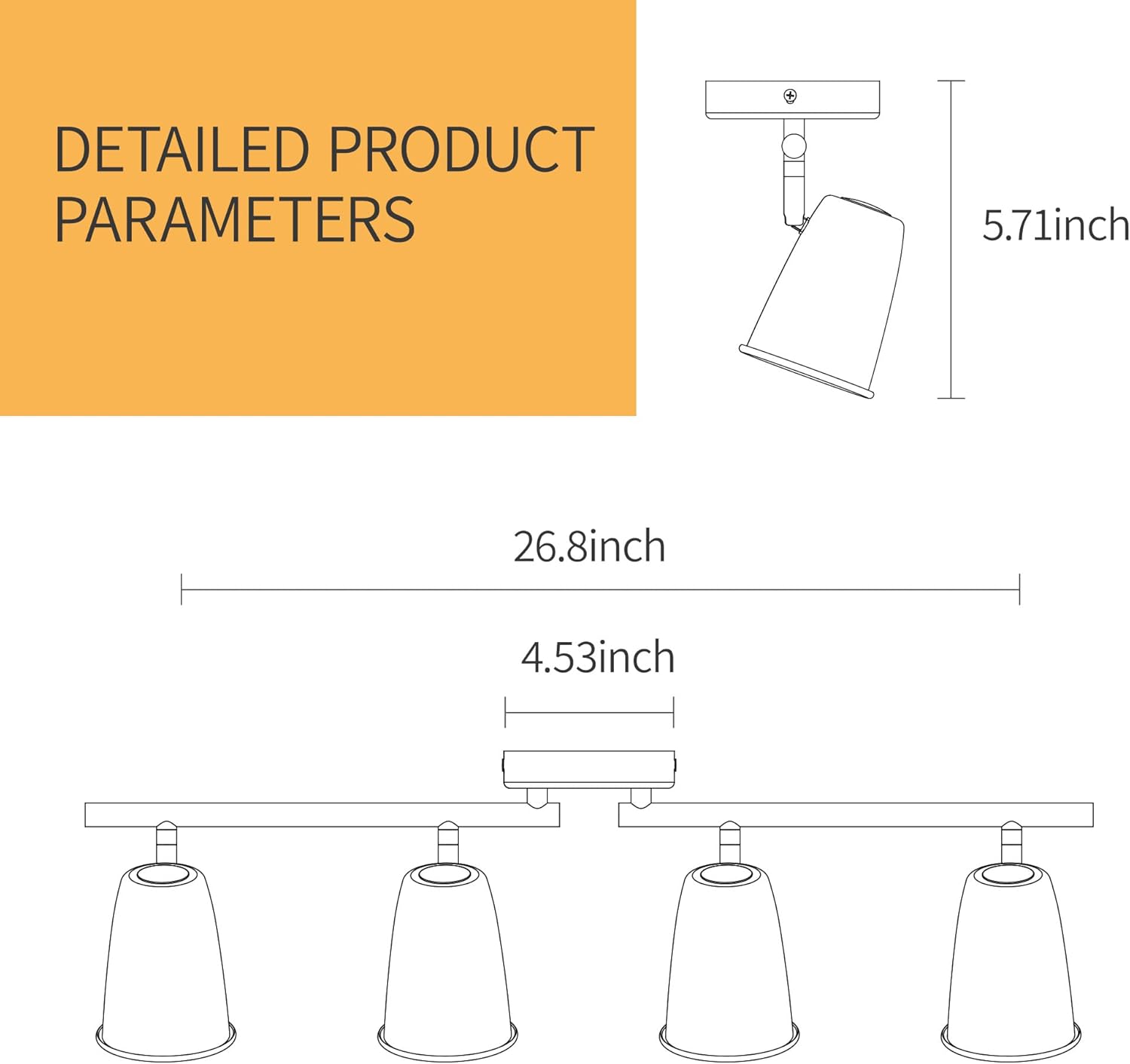 - Classic Black Design: These track lights feature a sophisticated and timeless design with a sleek black finish. They seamlessly blend industrial and traditional elements, creating an elegant aesthetic that complements any interior style. With dimensions of 4.53x5.71 inches, they are the ideal choice to enhance the ambiance of any space