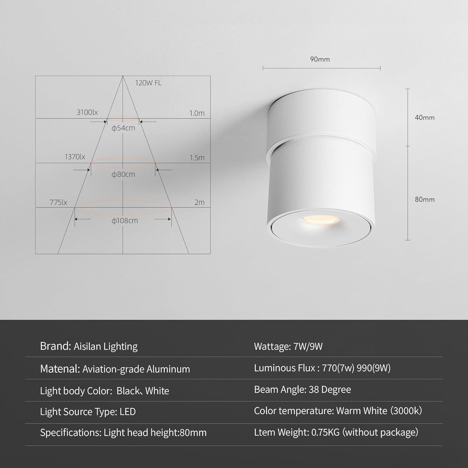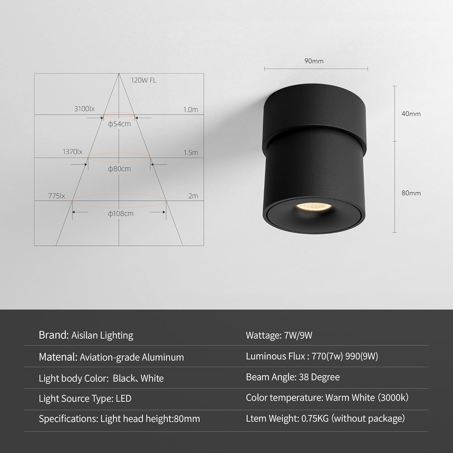 This spotlight features an LED CREE chip with a lifespan of at least 50,000 hours. While it does not support replacing the light source, it is backed by a three-year after-sales service.