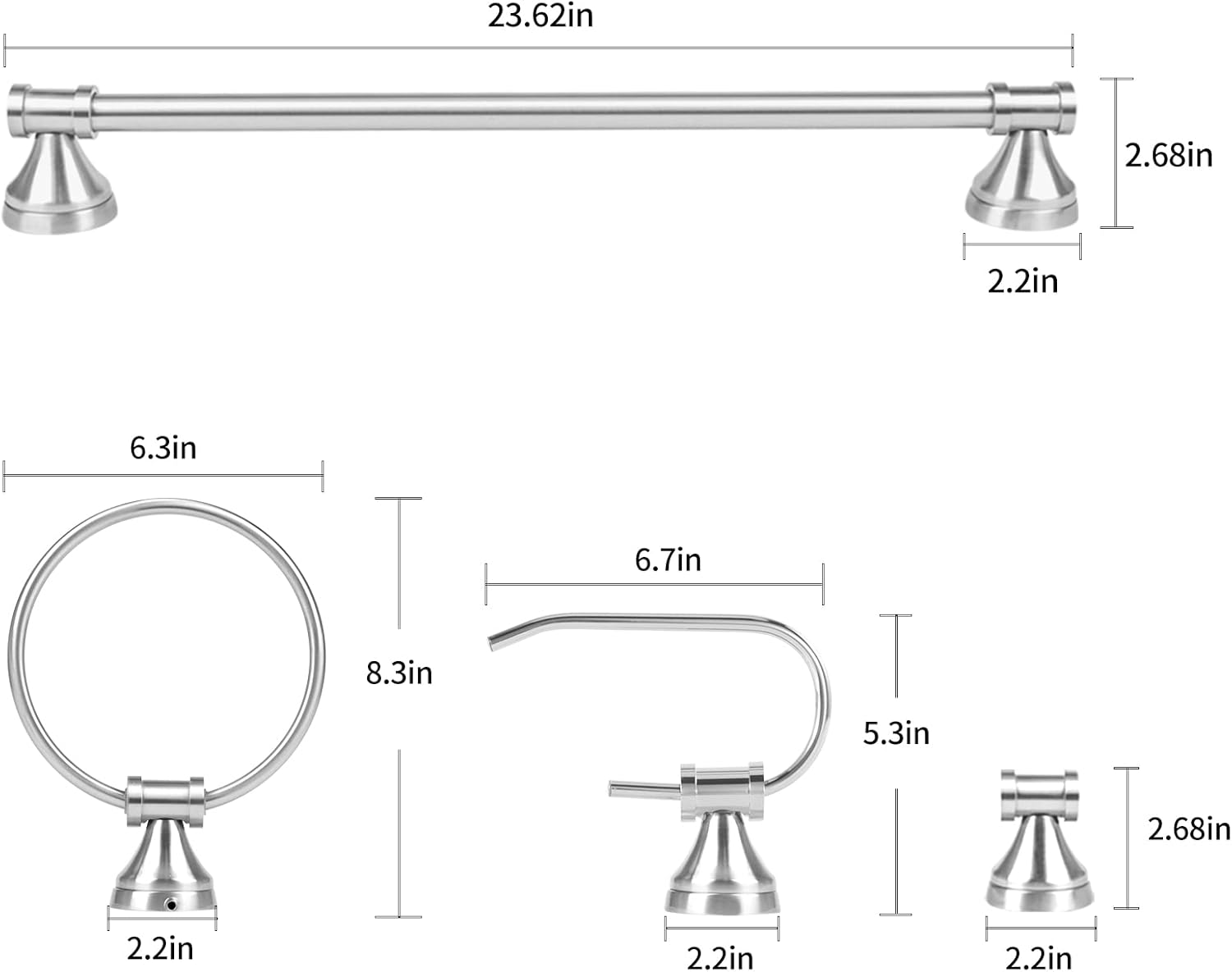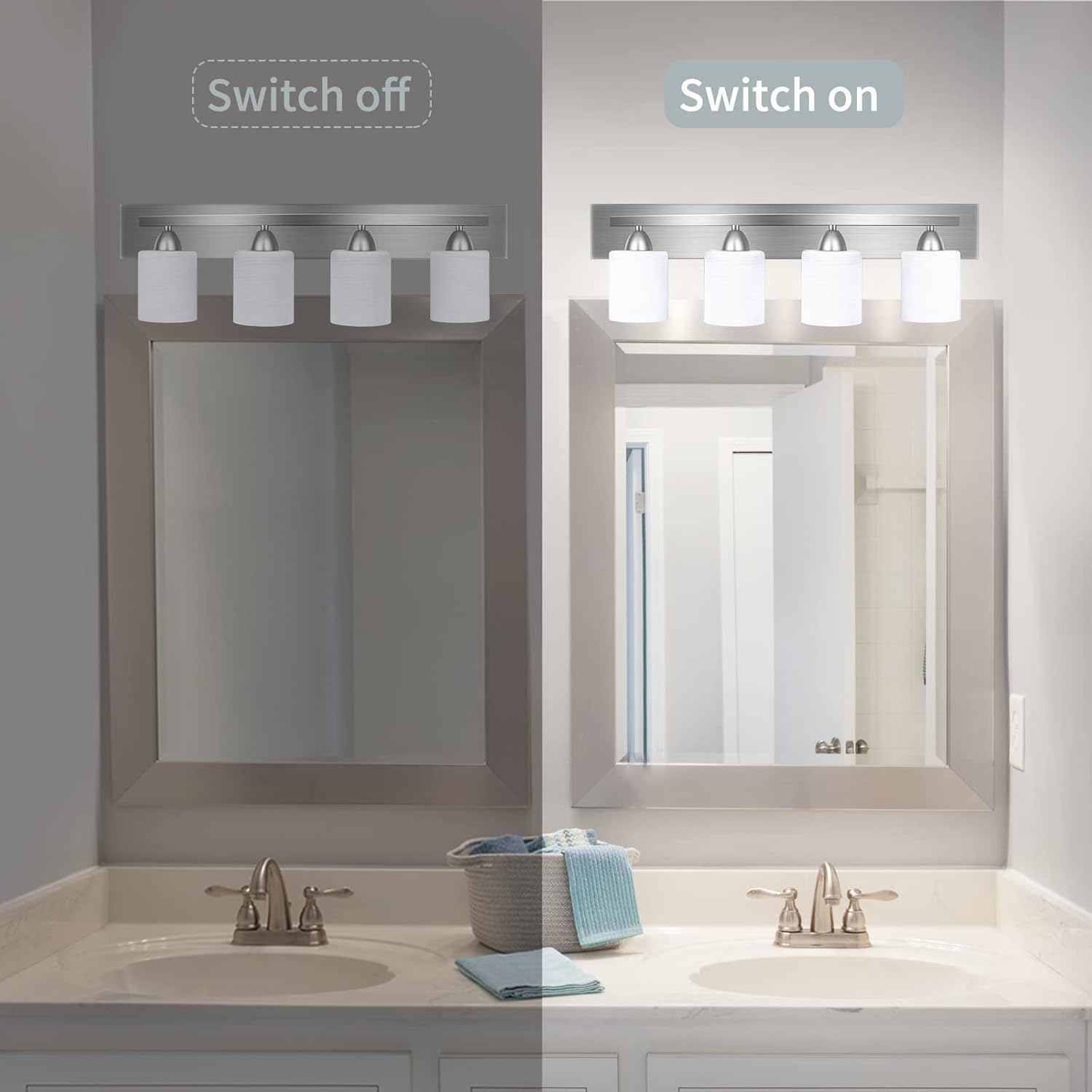 PARTPHONER 4-Light Bathroom Vanity Light Fixture, 5 Piece All-in-One Bath Sets, Bar, Towel Ring, Robe Hook, Toilet Paper Holder, Brushed Nickel with White Frosted Glass Vanity Light