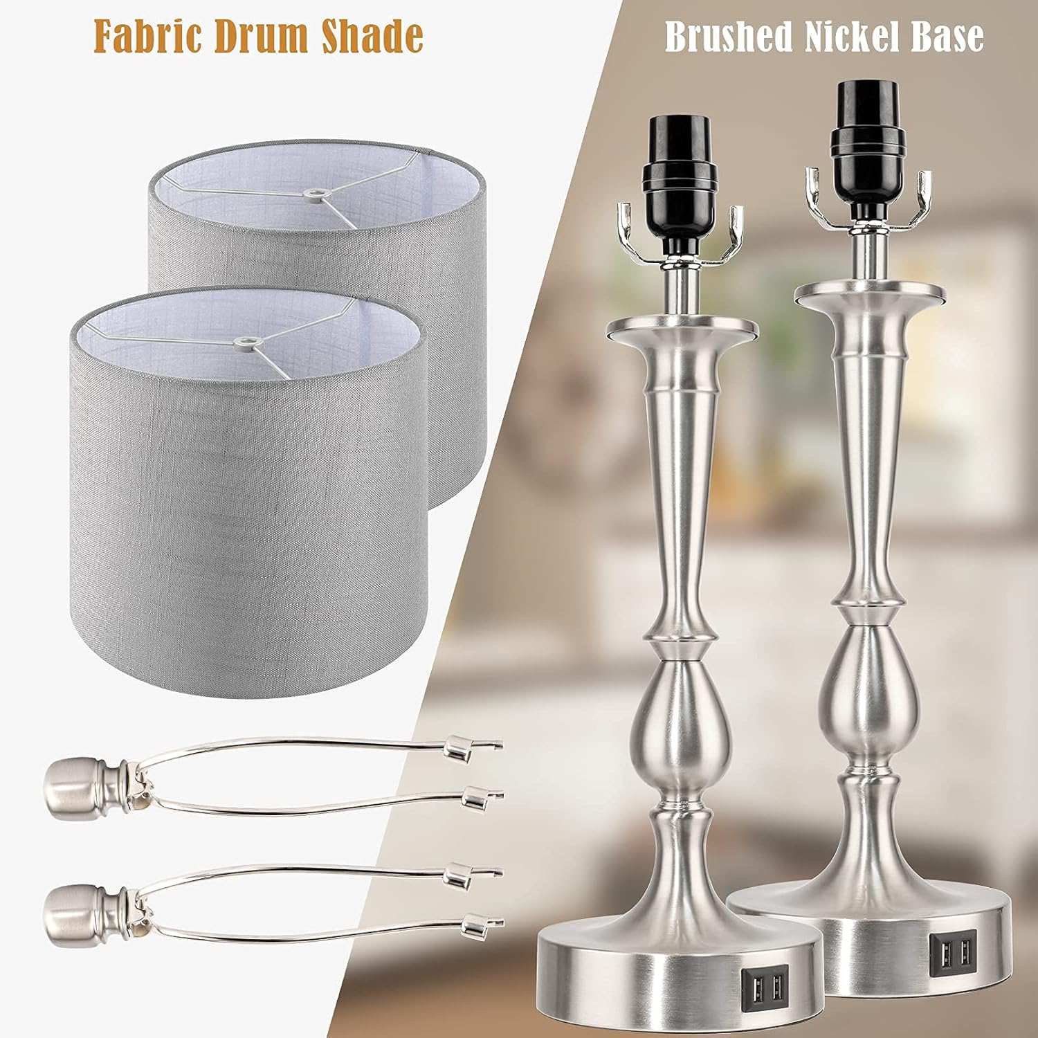PARTPHONER Set of 2 Touch Control Table Lamp with Dual USB Charging Ports Desk Lamps, 3-Way Dimmable Modern Nickel Finish Bedside Large Table Lamps for Living Room, Bedroom