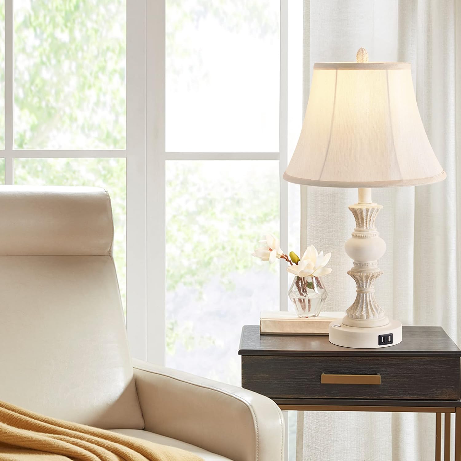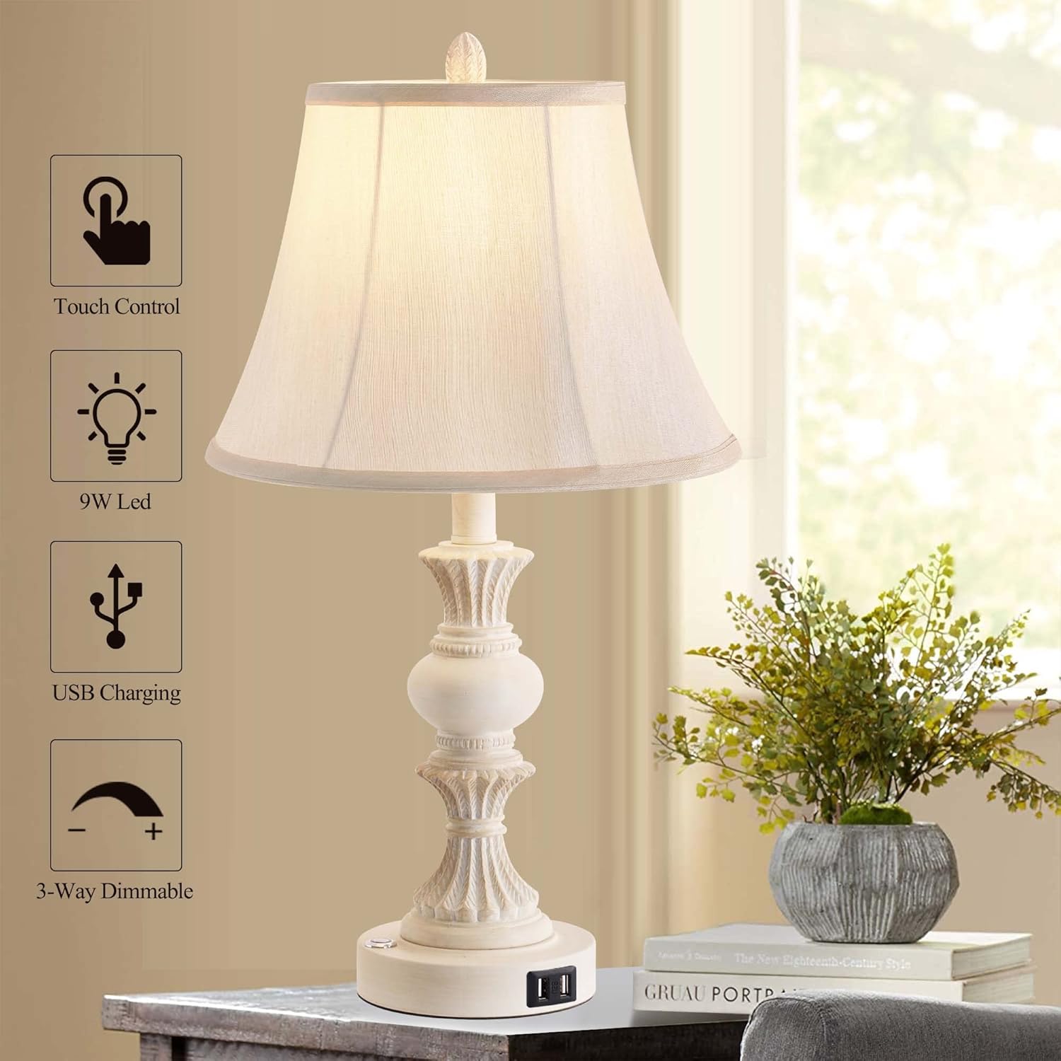Touch Control Table Lamp Set of 2, 3-Way Dimmable Bedside Lamp with 2 USB Charging Ports, French Country Style Nightstand Lamps with Faux Silk Shade for Living Room, Bedroom - Antique White