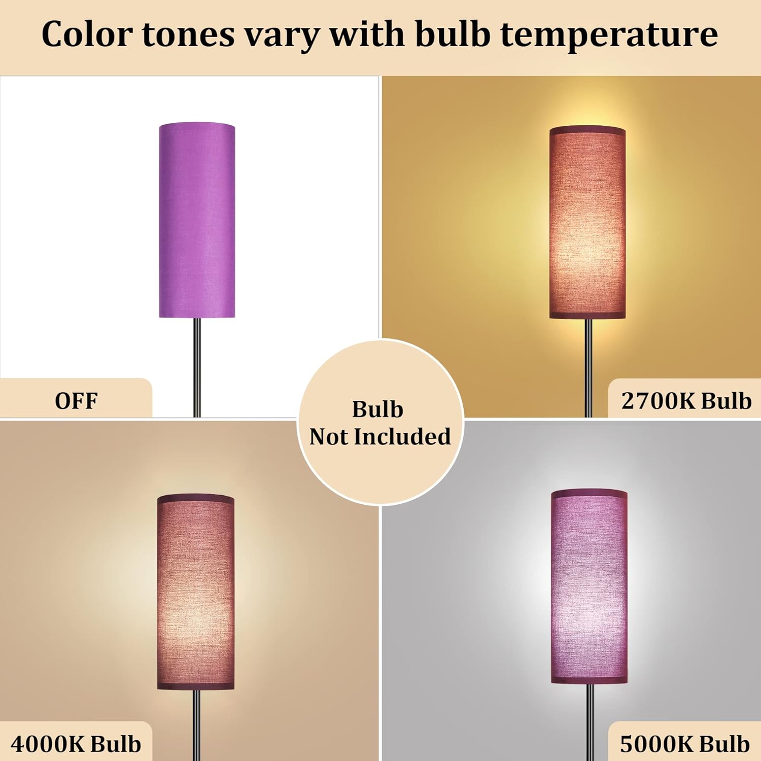 Bai Source Floor Lamp for Living Room, Modern Standing Lamps with Lampshade Purple