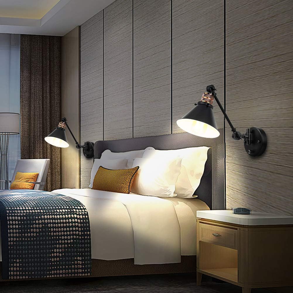 Bai Source Plug in Wall Sconces Swing Arm Wall Lamp with Dimmable On Off Switch, Metal Black Vintage Industrial Wall Mounted Lighting