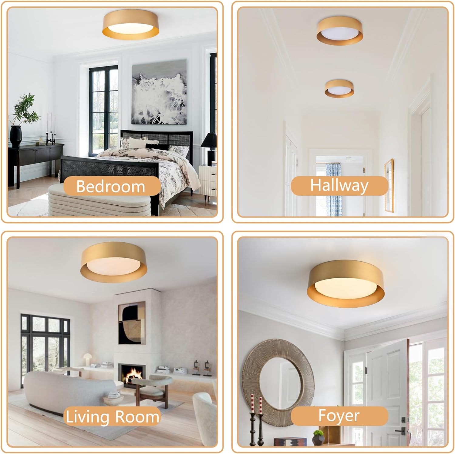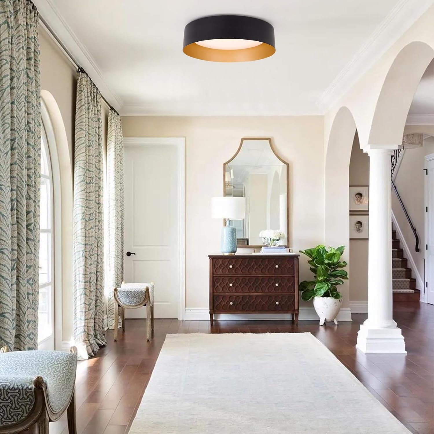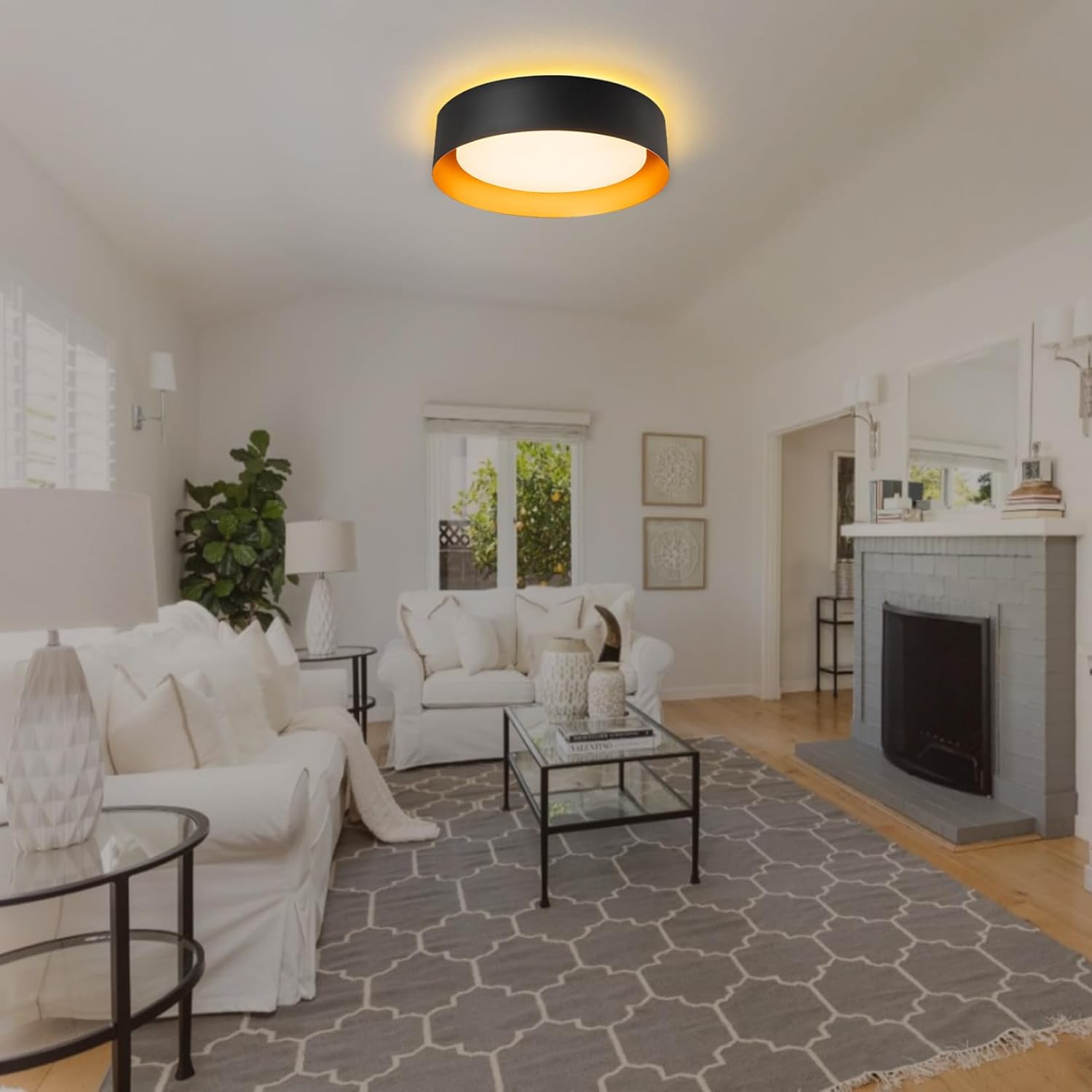 - MINIMALISM DESIGN: The bedroom lighting fixtures ceiling feature a matte black frame with champagne gold inside . Our ceiling light cover will definitely be an eye catcher for anyone who steps in your house due to this modern super thin design.
