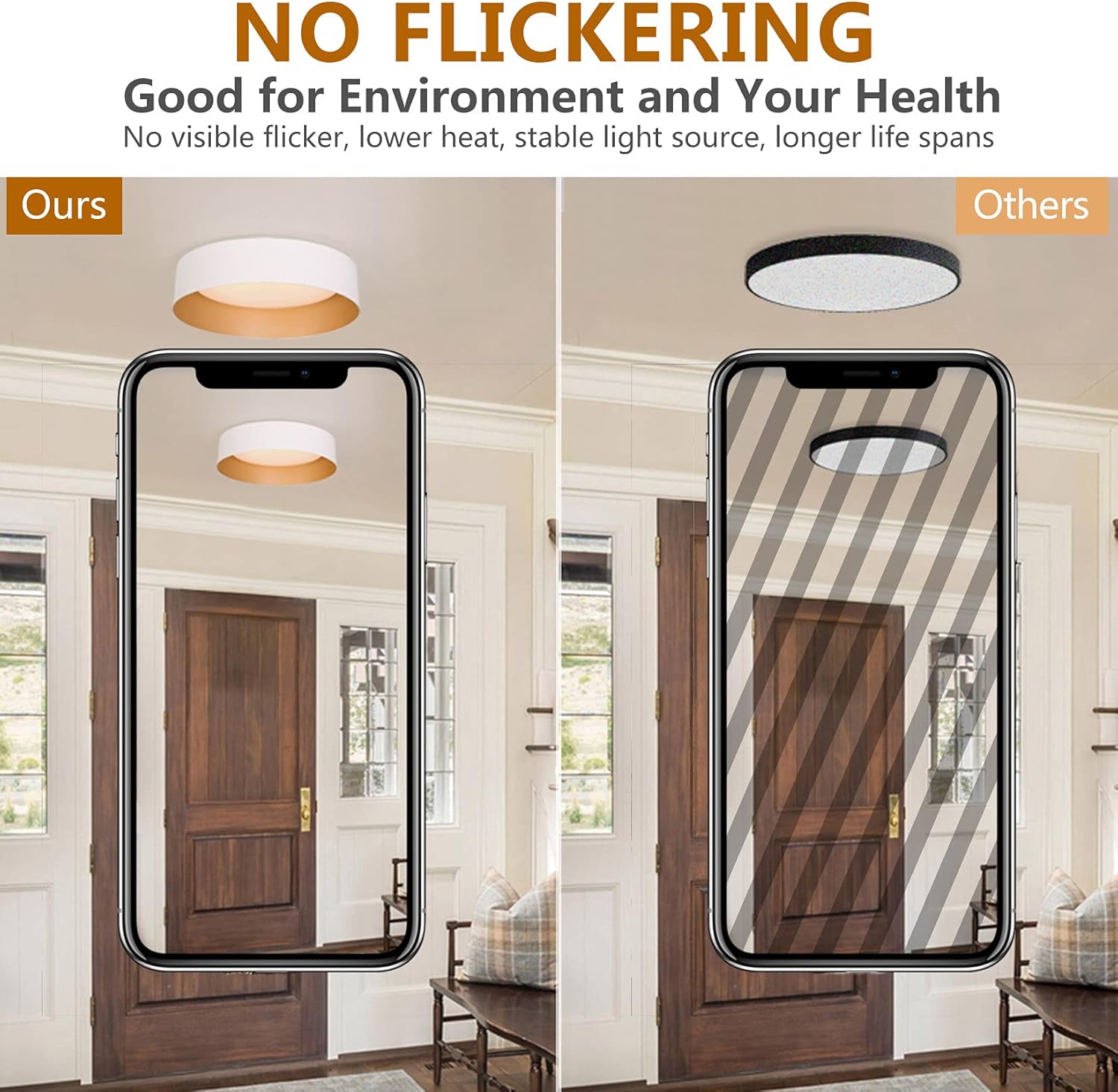- EASILY SET UP YOUR FLUSH MOUNT CEILING LIGHT: Our kitchen lights ceiling comes in a 12.5 x 3.1-inch size.No bulbs are required.The dimmable LED ceiling lights brings you the most warm lighting.The ceiling light fixture is compatible with most standard dimmers, 18W (100W equiv.)/3000k/warm white,fully dimmable from 10%-100%, which satisfies your different request of brightness.