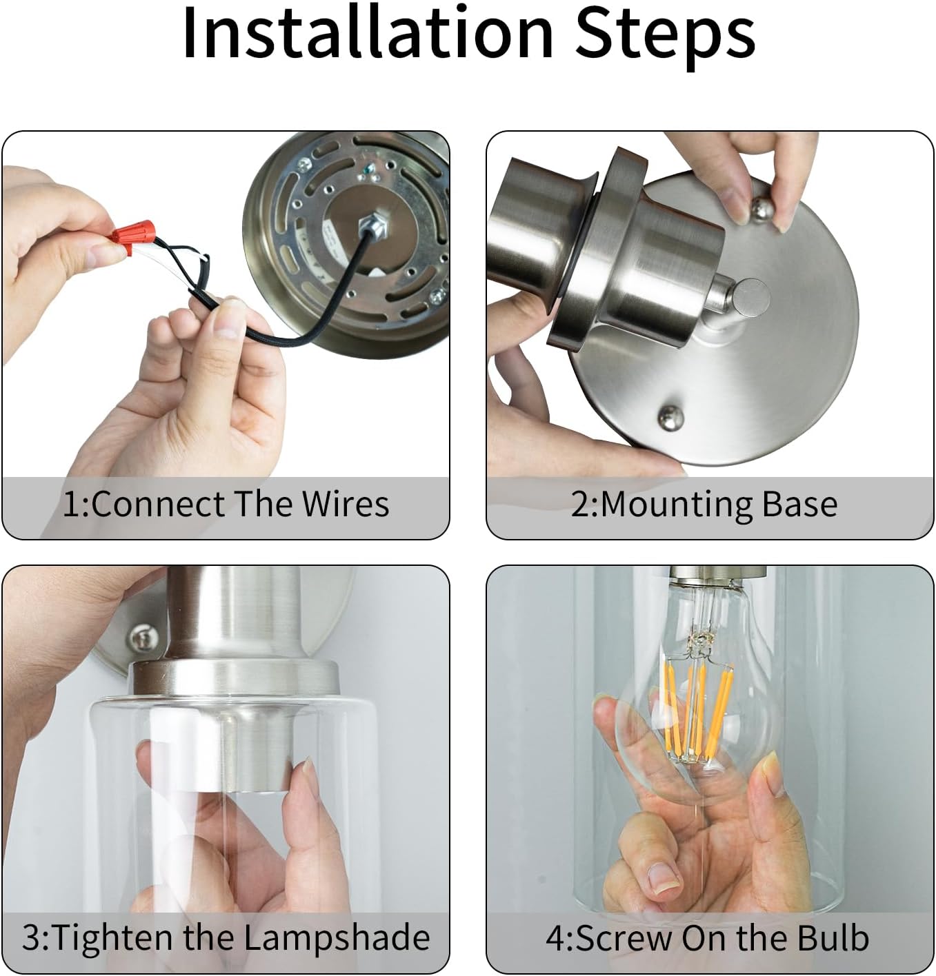 - 【💡Durable Modern Wall Sconce】The brushed nickel wall sconce is built with a sturdy steel base and a simple glass shade, ensuring it's made to last. The lampshade is made of highly transparent glass, allowing light to fully illuminate every corner. The steel base and stand are rust-resistant and durable, providing stable support and preventing loosening or deformation. This outstanding wall light combines durability with modern aesthetics, making it an eye-catching addition to any room.