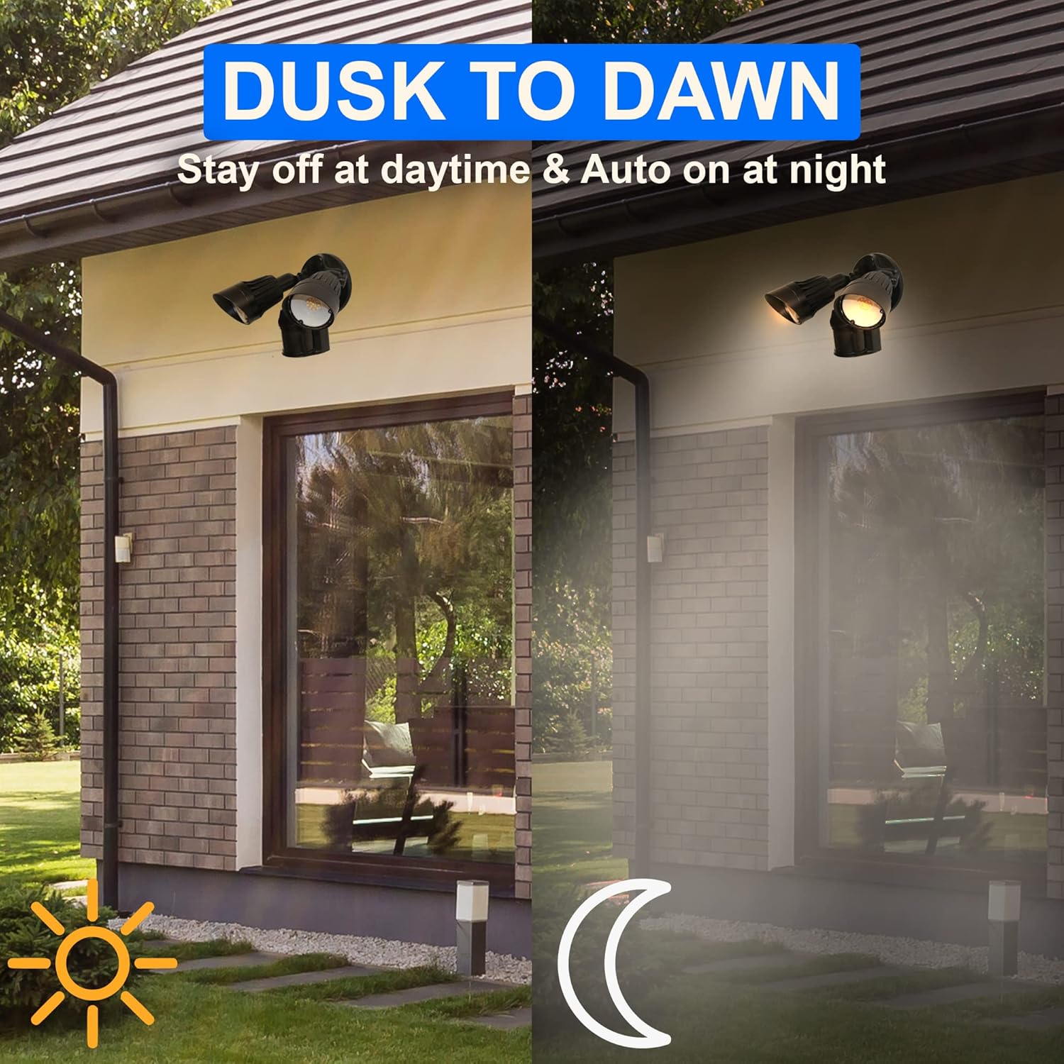 - 360° Adjustable Dual Light Heads: Customize your lighting coverage with fully adjustable dual heads, perfect for illuminating dark outdoor spaces, walkways, entryways, and secluded areas for enhanced safety and visibility.