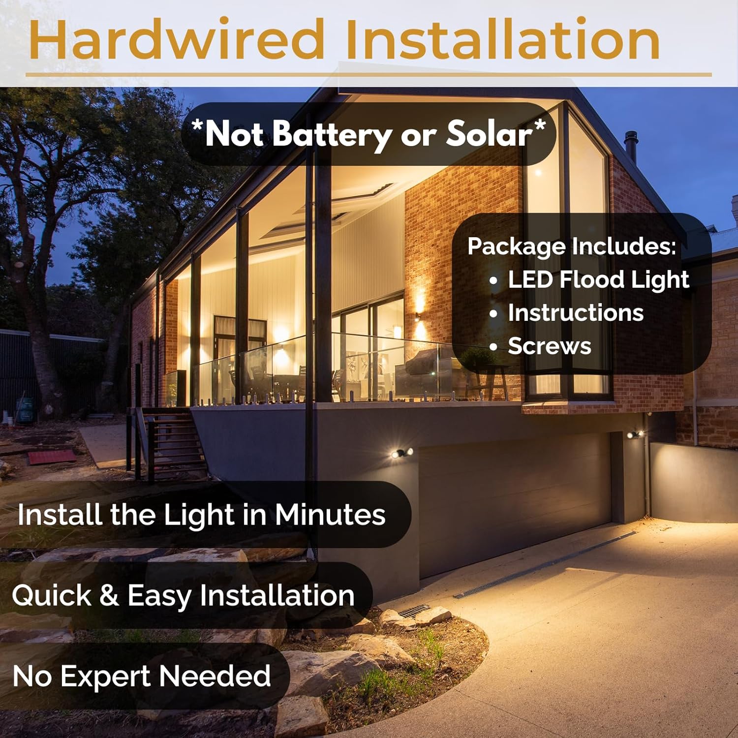 - Easy Hardwired Installation: Designed for quick and hassle-free setup, this outdoor LED flood light can be easily mounted to any exterior wall with straightforward wiring steps, making it ideal for homeowners and professionals alike.
