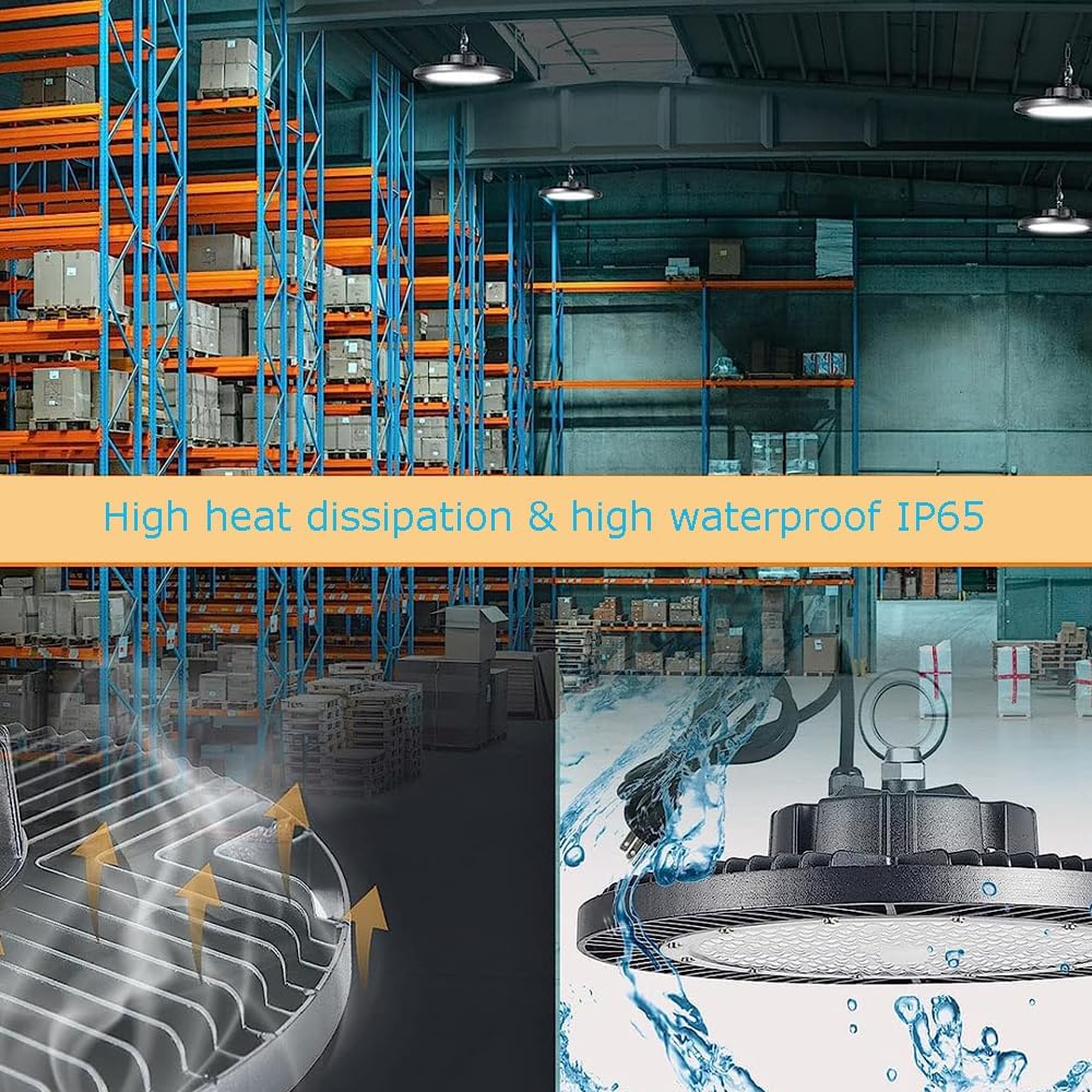 - 💡【Durable & Excellent Heat-Dissipation】This LED high bay light features an IP65 waterproof rating. The pure aluminum cold forged housing provides excellent heat transfer to extend component life to 50000+ hours and prevent damage. Never worry about this product being damaged by outdoor weather conditions again