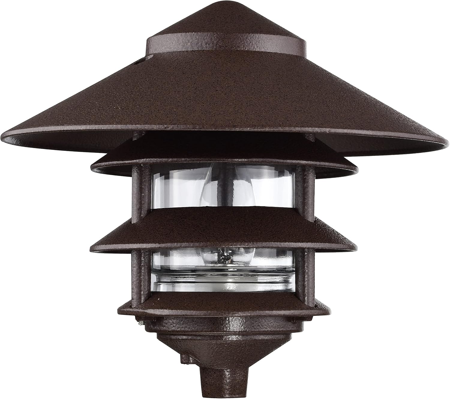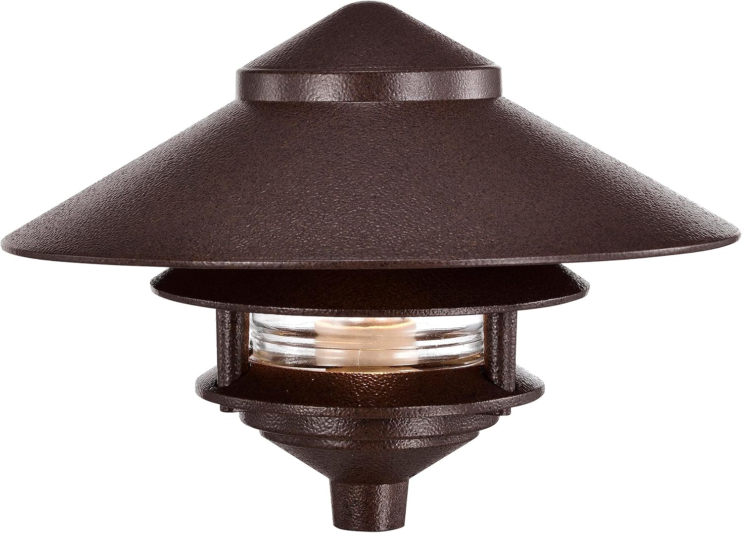 - 1-light 9" outdoor pathway light with three louvers and small hood in an old bronze finish