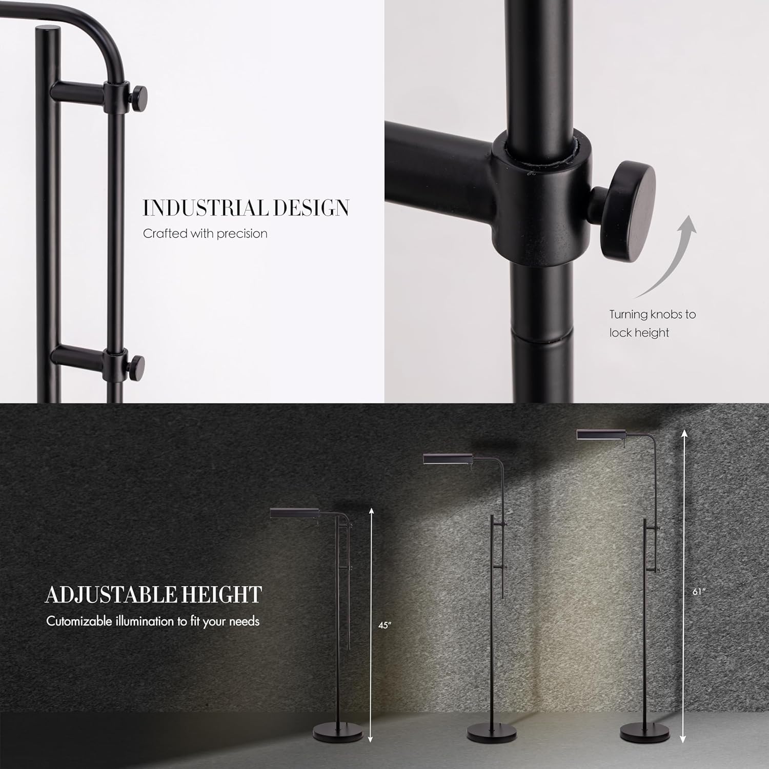 - Customizable Illumination: Experience the epitome of versatility with the Cedric lamp's adjustable height, ranging from 45 inches (lowest height) to 61 inches (highest height), in addition to its 360-degree swing arm and 180-degree swivel lamp head. Tailor your lighting to perfection, whether you're reading, working, or simply setting the mood.