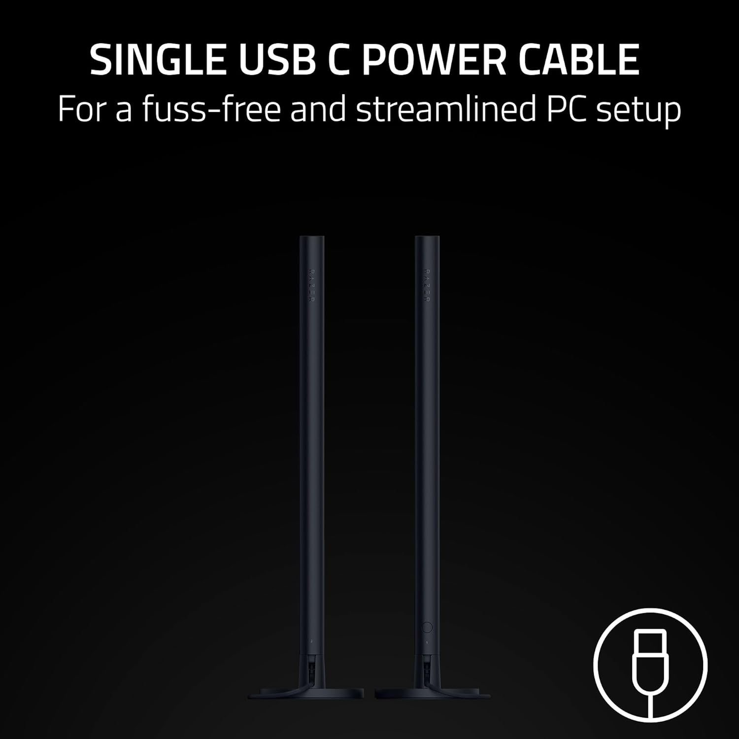 "Maximize your gaming and entertainment lighting ambience with the Standing Light Bars. The reversible design enables either user-facing or wall-projecting Razer Chroma RGB lighting effects, easily customizable to match your PC’s color scheme or be in sync with all displayed content for greater immersion and visual engagement. Individual Bar Lighting capabilities allow you to customize unique colors on each light bar, enabling a mix of colors even while the same Razer Chroma RGB effects are running. Sync up the lighting effects with all other Razer Chroma™ RGB enabled devices to create a unique setup with a cohesive look that reflects your personal style. Powered by just a single USB C power cable, the Standing Light Bars are ideal for PC gamers looking for a minimalistic, fuss-free, and clean battlestation setup. Being Matter Compatible just like all other Razer Gamer Room devices, experience seamless integration across all smart home ecosystem supported by Matter. Enjoy a hassle-free setup across various smart devices, and utilize voice assistants to control your light bars conveniently. "
