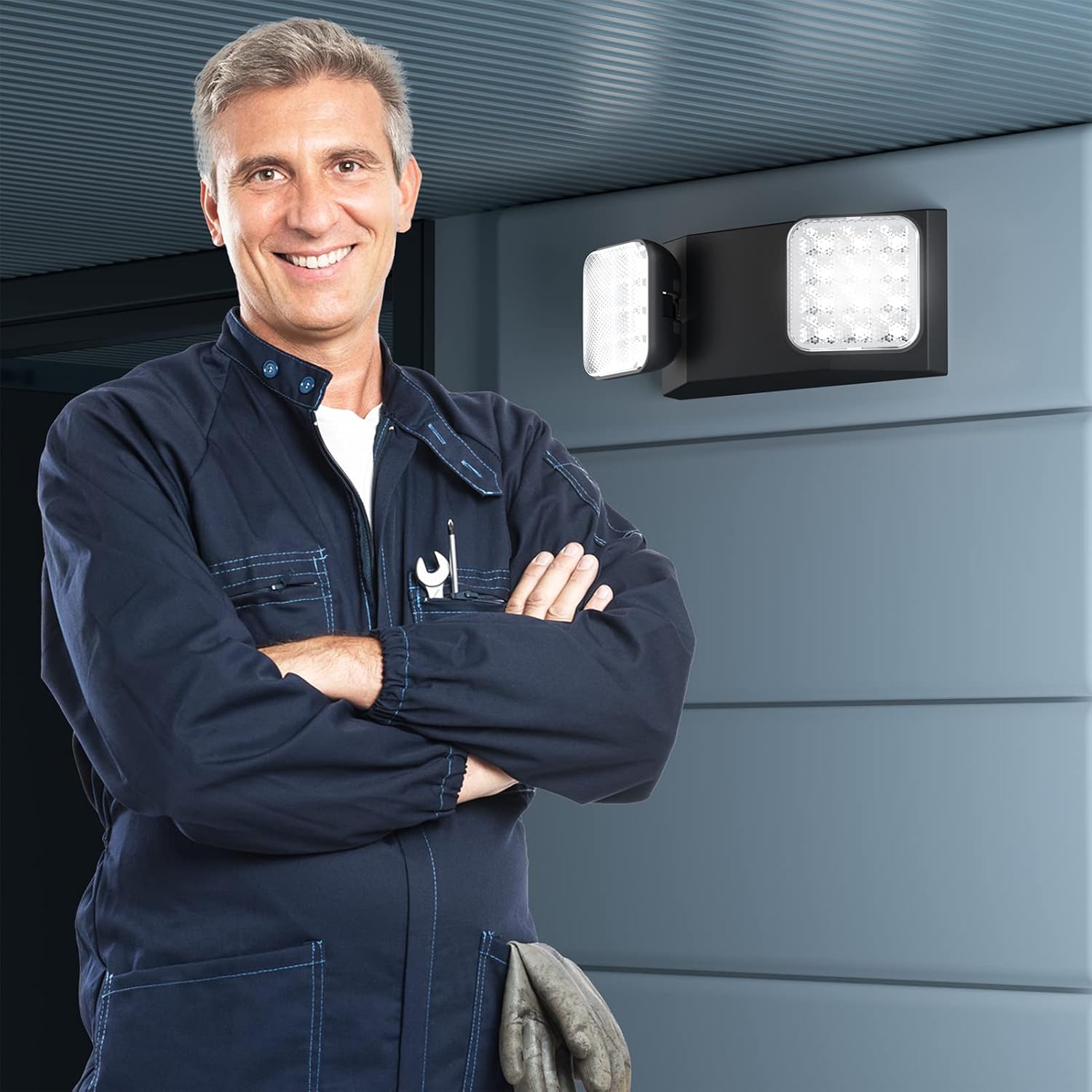 Black emergency exit lights each head is equipped with 24 super bright SMD LEDs and outputs 125 lumens.Use long-lasting, efficient ultra bright white LEDs.the flexibility of the light direction allows you to point the lights,at almost a 200 degree angle.